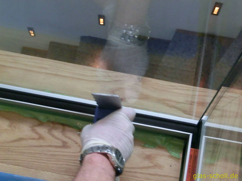 Die Scheiben bestehen aus aus zwei teilvorgespannten 8mm Scheiben, die mit einer 0,76´er PVB-Folie zu einer 16,76mm dicken Verbund-Sicherheits-Glas-Scheibe verbunden wurden. Eine optisch ansprechende und transparente schöne Lösung.