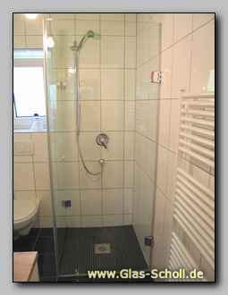 Rahmenlose Ganzglasdusche - 90° Festteil mit an der Wand angeschlagene Türe