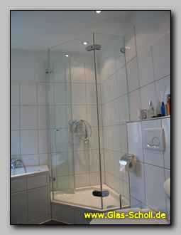 Fünfeckdusche mit einem klappbarem Seitenteil vor der Wanne