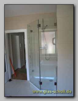 rahmenlose Fünfeck-Ganzglasdusche mit CULT Beschlägen