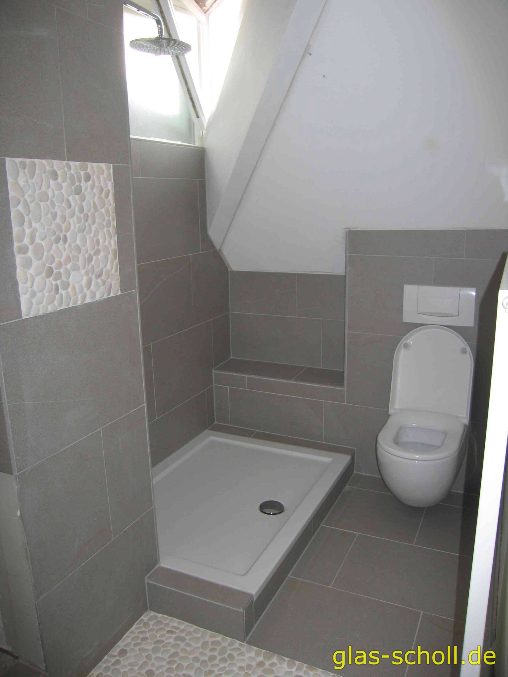 Hier sehen Sie eine Referenz, die wir im Jahr 2006 erstellt haben. Im Rahmen der mobilen Umprogrammierung der Webseite wurde diese knifflige Einbausituation mit übernommen. Die Lösung dieser Dusche im Dachbereich wurde auf der linken Seite mit dem Sonderbeschlag Milano 6180-B2 realisiert. Die rechte Türe wird mit dem Glas-Glas Milanobeschlag 6130 an dem Modellseitenteil, das wiederum im glanzverchromten U-Profil gehalten wird. Als Türgriffe wurden die quadratischen Griffe "Quadrato" verwendet. Eine knifflige Lösung mit kompliziertem Aufmaß wurde hier durch Glas Scholl sehr gut realisiert. Die Duschbeschläge sind vom Design Milano, die technisch mit Romana und Florenz indentisch sind. Heute verwenden für dieses Design den deutliche weiterentwickelten Fardello-Beschlag.