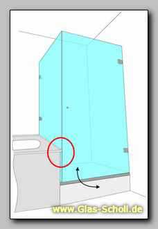 90° Ganzglasdusche mit aufgesetztem Seitenteil und überstehender Wannenkante