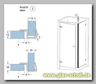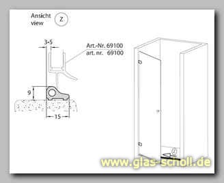 | seitliches Wasserabweisprofil mit Lippe fluchtend für 6-8mm Glasstärke (Art. 69105 für 2010mm und Art. 69106 für 2500mm) |