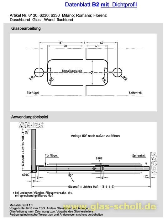 6130 Milano Duschtuerband Glas-Glas GB mit