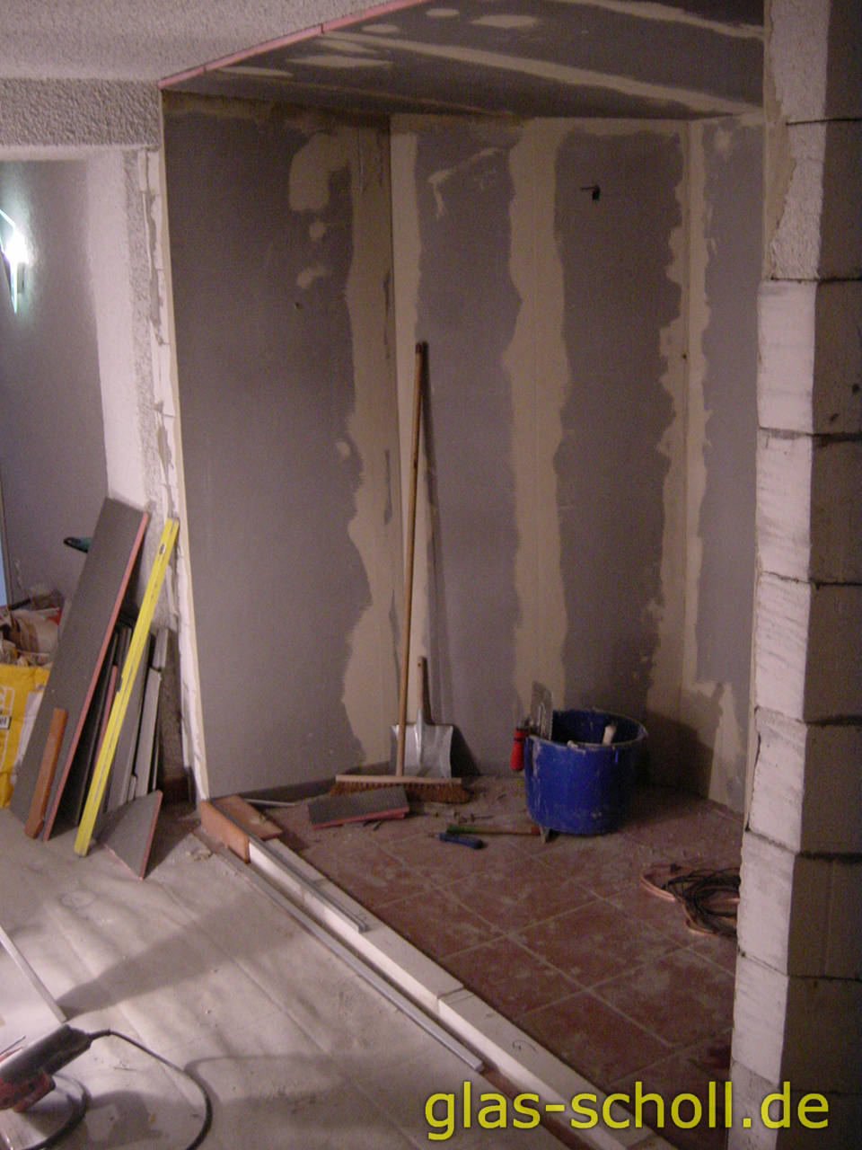 Hier sehen eine sehr schöne Dampfsauna. Die Glasabtrennung besteht aus zwei Seitenteilen, sowie einer mittigen Türe, die mit Atlantica Glas-Glas Beschlägen montiert wurde. Da der Boden recht rauh war und wir nicht wollten, das die untere Dichtung dadurch abgeschliffen wird, wurde unter der Türe ein tranparenter kleiner Acrylstab als Schwallschutz montiert. Am Ende wurde die geneigte Decke mit einer PVC-Platte versehen, in die von hinten farblich wechselne Glasfaser in Form eines Sternenbildes eingebracht wurden. Auch das Licht unter der Sitz-Einheit ist sehr schön. Wir haben versucht mit unterschiedlichen Einstellungen diese Ambiente zum Teil rüber zu bringen. Diese Glasscheiben sind wie alle Dusch-Scheiben natürlich im Ofen zu Einscheiben-Sicherheits-Glas vorgespannt worden.