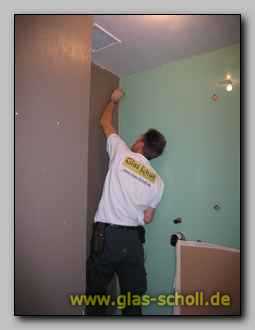 Wie kompliziert die Montage bei so großen und knappen Scheiben in so einem kleinen Raum ist, können Sie bei den Montagebildern, weiter unten, sehr gut sehen.