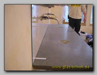 Anschließend wurde das Glas zu Einscheiben-Sicherheits-Glas vorgespannt.
