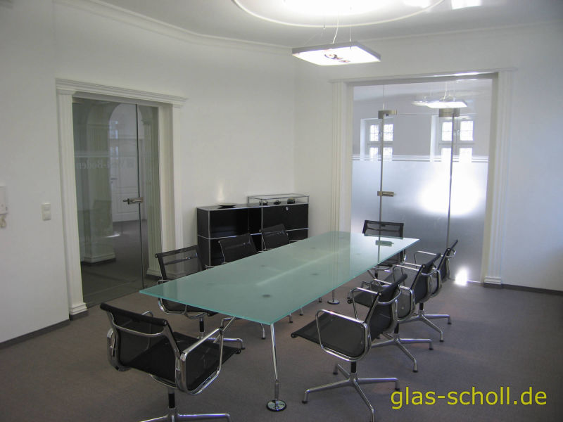 Hier sehen Sie eine Ganzglas-Abtrennung zwischen Flur und Konferenzraum.