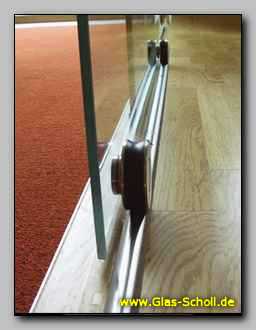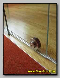 Beim Schiebetürsystem "Terra" befinden sich die frei sichtbaren Rollen und die Laufschiene am Boden. Somit trägt der Boden das Gesamtgewicht