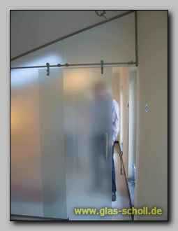 Dreiteilige HISKA-Schiebetüranlage mit Sandstrahl-Effektfolie