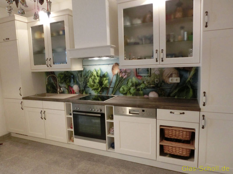 Ein Fliesenspiegel oder Küchenrückwand, mit einer schönem Küchen-Motiv .