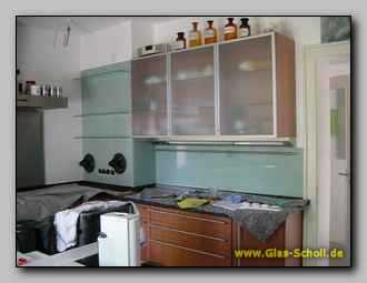 Hier sehen Sie einen lackierten Glas-Spritzschutz. Die Steckdosen wurden integriert und zusätzlich wurden