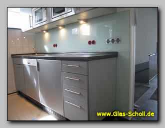 Hier eine Firmen-Küchenzeile, die mit einem Spritzschutz versehen wurde. Da die drei Lichtschalter