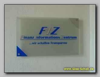 Die Glasscheibe ist Satinatoglas und die Beschriftung wurde im Digital-Farbdruck von vorne