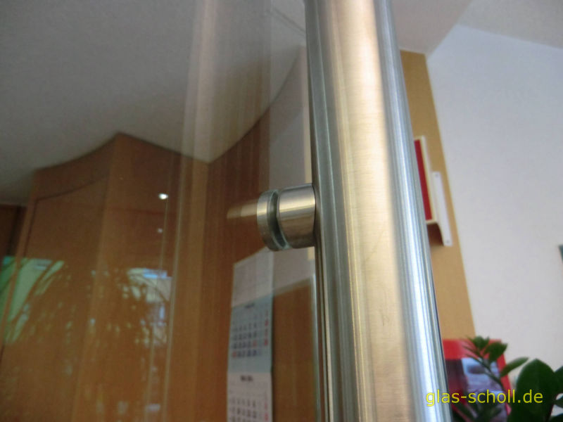 Das Glas sollte nicht bis zur abgehangenen Decke reichen und möglich transparent, ohne störende statische Elemente, wirken. Auf Grund der runden Theke sowie der fehlenden Statik nicht ganz einfach.