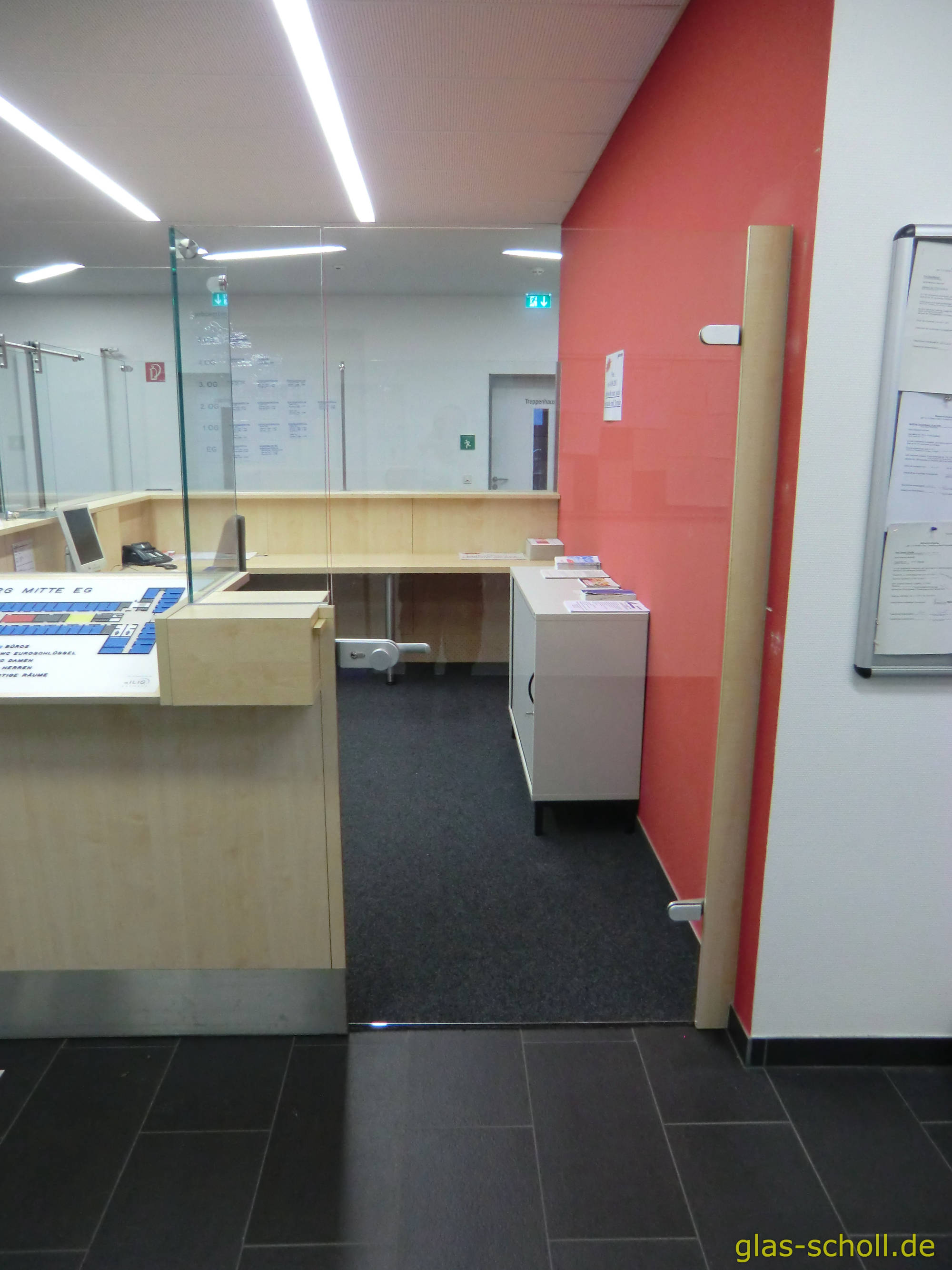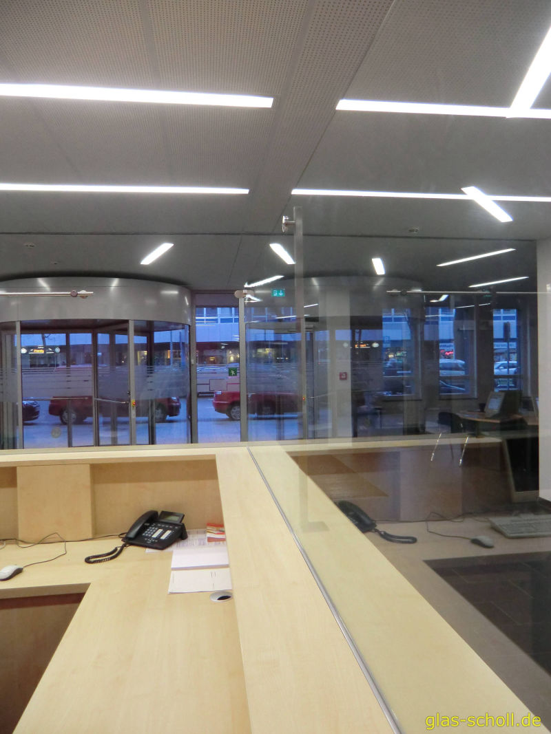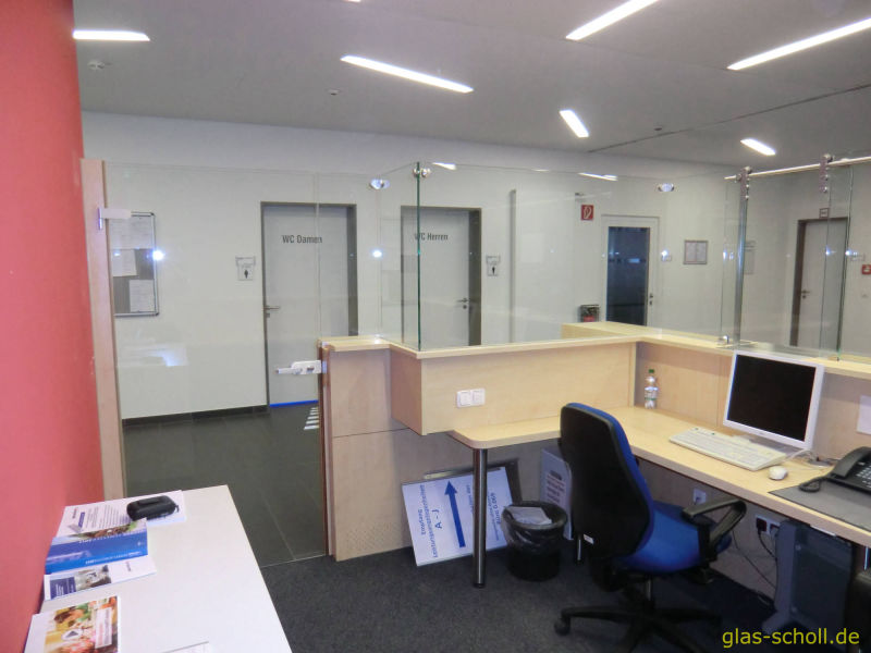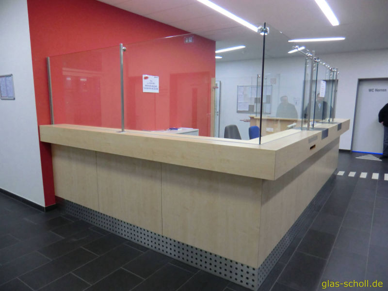 Die Empfangstheke einer Arbeitsvermittlungs-Agentur sollte mit einer Glas-Abtrennung versehen werden.